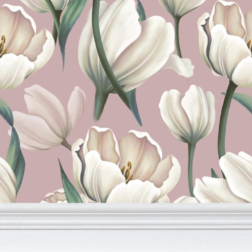 Blush Tulips Repeat Pattern Wallpaper